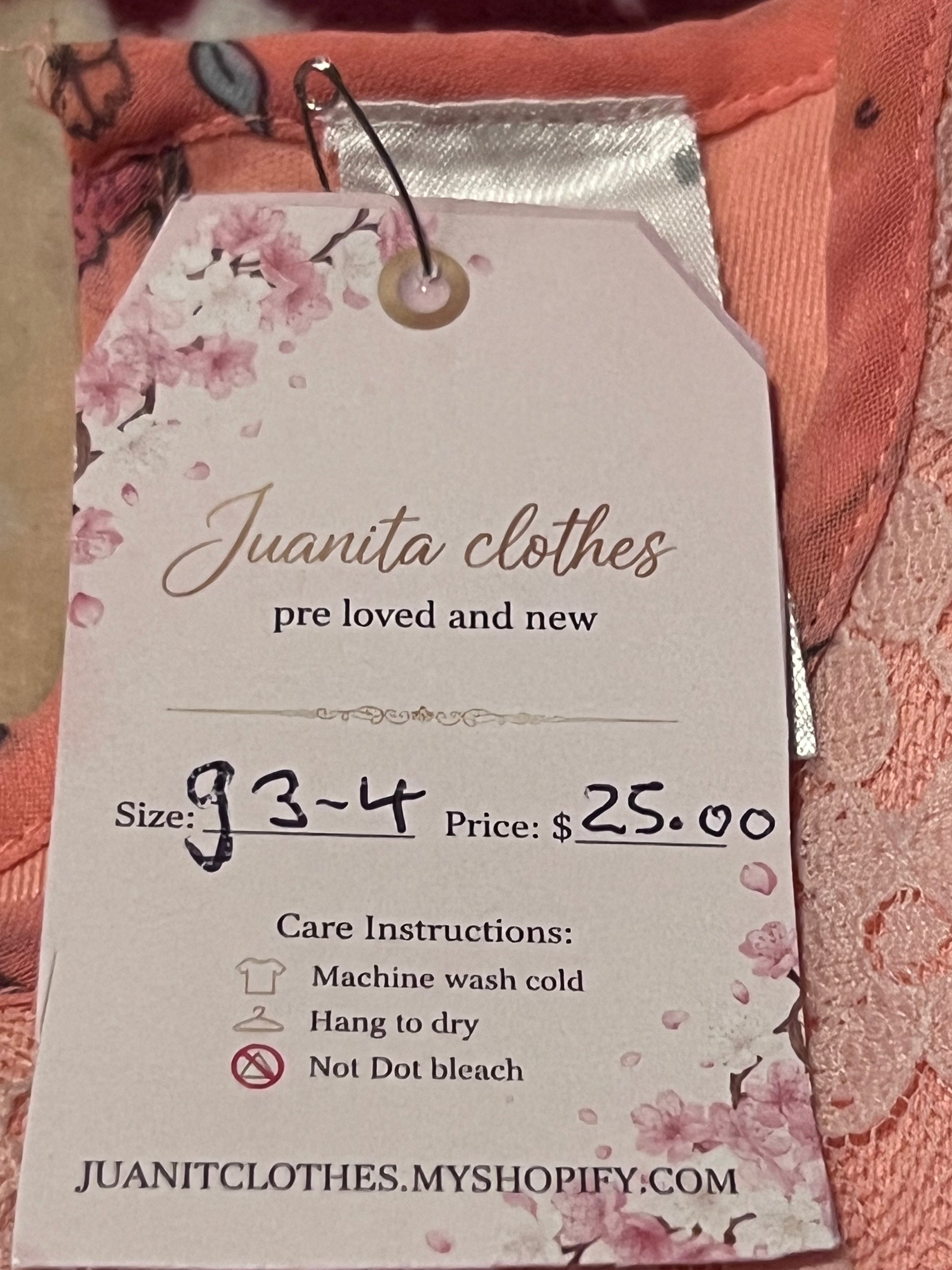 Coral Pink Party Dress - Size 3-4 - Pre-Loved